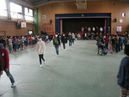 「卒業を祝う会」(14) 公開日 2021/03/10 更新日 2021/03/10 お知らせ 6年生が退場します。 「卒業を祝う会」はみんなの気持ちが一つになった心温まる時間になりました。「金塚小学校は一つの大きな家族」という気持ちが子ども達の中に育ってきているのではないでしょうか。「あこがれられる6年生」に成長した34人の子ども達に心からの拍手を送りたいと思います。 いいね(0)