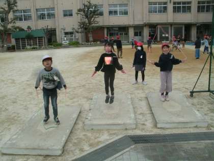「なわ跳び遊び」 公開日 2021/03/10 更新日 2021/03/10 お知らせ (写真1) 「なわとびガールズ」と「なわとびガールズジュニア」です。 (写真2)二重跳びの猛練習中です。 (写真3)6年生男子二人のコラボレーション。 いいね(0)