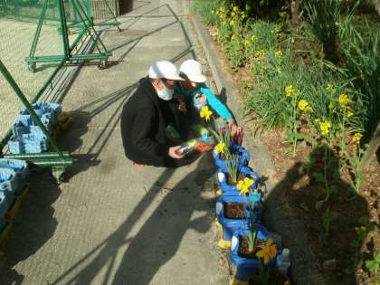 ラッパスイセンの花が春の光に照らされて、とてもきれいです。