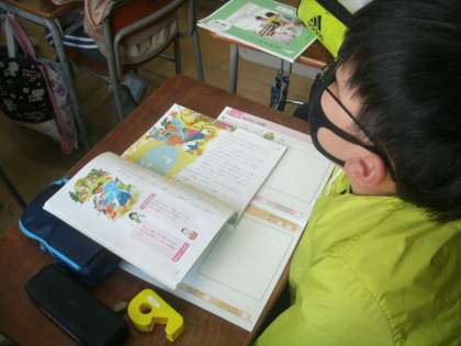 道徳科学習の様子です。今日の教材文は「よわむし太郎」です。