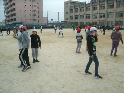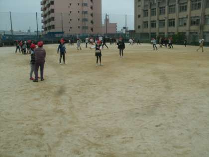 子ども達が運動場に飛び出してきました。