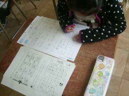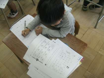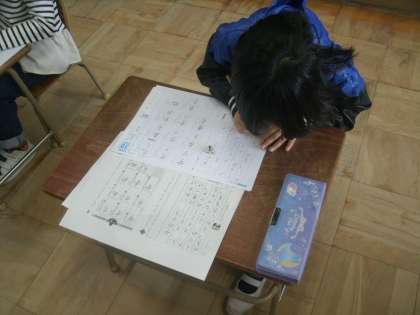 国語科学習の様子です。「1年生のまとめ」プリントに取り組んでいます。小学校の学びの基礎基本は「読み・書き・計算」になります。漢字やかなを丁寧に書くこと、たし算・ひき算・かけ算・わり算ができるようになることが大切ですね。家庭学習でも「読み・書き・計算」に取り組んでいただきたいと思います。