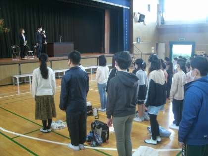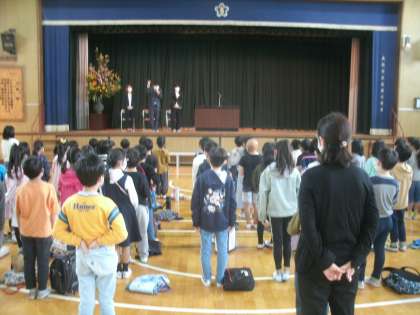 「令和3年度始業式・着任式」 公開日 2021/04/08 更新日 2021/04/08 お知らせ 始業式・着任式の様子です。 2年生から6年生までが体育館に集まりました。子ども達はみんな素晴らしい態度です。特に6年生は全てが金塚のスタンダードにふさわしい立派な態度でした。指先や足先まで気を配る立ち姿ができていました。 校歌を手話で歌いました。いつものように6年生が前に出てくれました。 いいね(0)