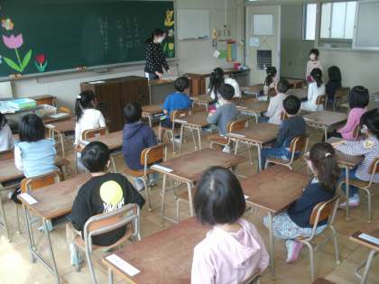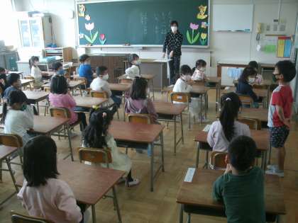 2時間目は一人一人が自分の好きな動物、食べ物、色のどれかを入れて、自己紹介をしていました。