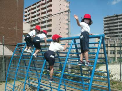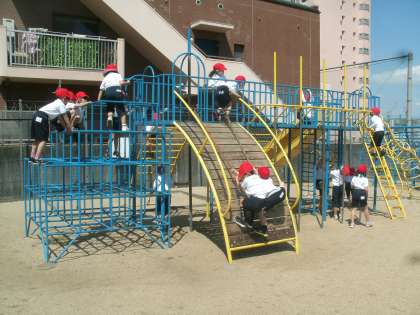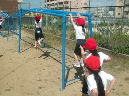 みんなで第2運動場へ行って遊びました。色々な固定遊具があって楽しいよ。