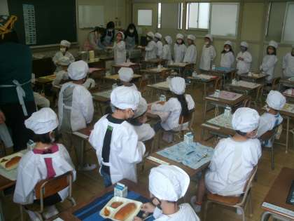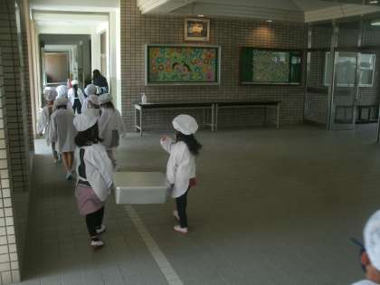 「初めての給食」 1年生(2) 公開日 2021/04/09 更新日 2021/04/09 お知らせ 今日の献立は「おさつパン・コーンスープ・煮込みハンバーグ・焼きかぼちゃ・牛乳」です。 給食当番以外の子ども達は座って静かに待っています。給食当番が「はい、どうぞ。」というと「ありがとう。」という子ども達の可愛い会話が生まれます。 いいね(0)