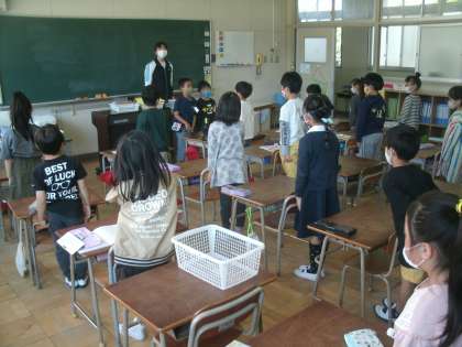 日直が前に出て、みんなで朝のあいさつをした後、ハンカチとティッシュを持ってきているかを調べます。コロナウイルス感染症感染予防対策として手洗いはとても大切です。毎日、清潔なハンカチとティッシュを持ってこさせてください。低学年のうちは保護者の皆さんが声をかけてあげてくださいね。