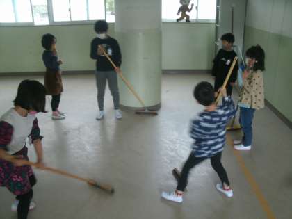 「初めての掃除」 1年生(1) 公開日 2021/04/12 更新日 2021/04/12 お知らせ 今日から掃除に取り組む1年生。6年生のお兄さん・お姉さんがお手伝いに来てくれました。 「ほうきはこうして持つんだよ。」 「ぞうきんはこのバケツで洗うんだよ。」 6年生が優しく教えてくれています。 いいね(0)