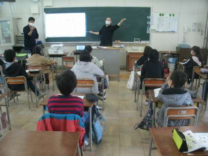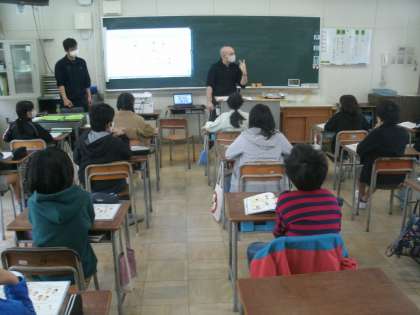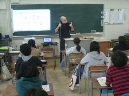 英語学習の様子です。今年度は火曜日にアダム先生が来てくださいます。