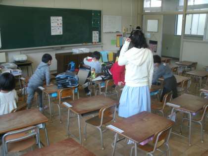 6年生の女の子4人が自主的に朝の「お助け隊活動」をしてくれています。昨年度の6年生が始めた「お助け隊活動」ですが、しっかり引き継がれていますね。