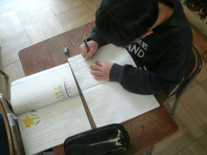 国語科学習の様子です。工藤直子さんの「すいせんのラッパ」というお話の学習に取り組んでいます。とてもかわいらしいお話です。短いお話ですので、保護者の皆さんもぜひ読んでみてくださいね。