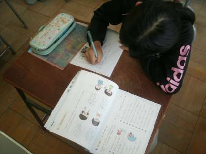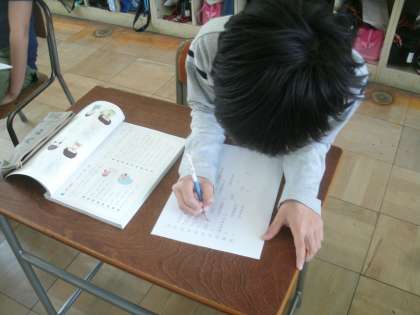 漢字の学習プリントに取り組んでいます。字は丁寧に書けているかな。