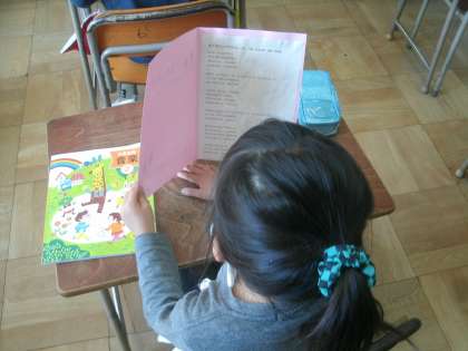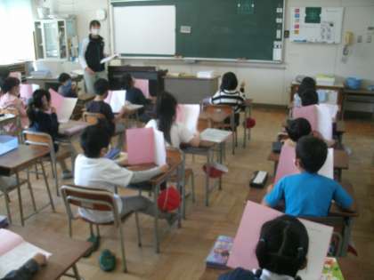 音楽科学習の様子です。みんなで楽しそうに「ミックスジュース」という歌を歌っています。