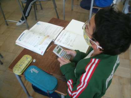 算数科学習の様子です。今日は計算に電卓を使っていますね。