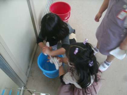 お掃除の仕方を覚えてくれたかな。6年生のお兄さん・お姉さんが優しく教えてくれますよ。