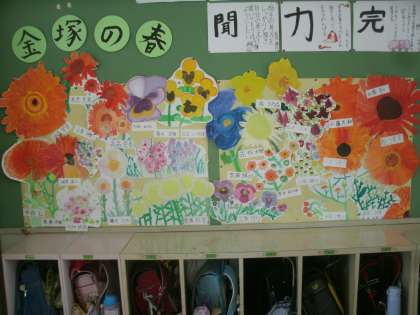 6年生の教室に子ども達の共同作品「金塚の春」が貼ってありました。とても色鮮やかで素晴らしいです。写真では伝えきれないのが残念です。