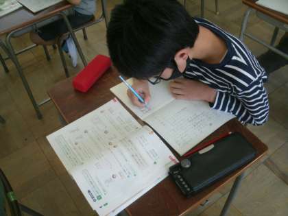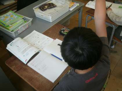算数科学習の様子です。今日の学習課題は「筆算をくふうしよう」です。