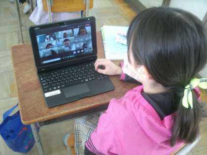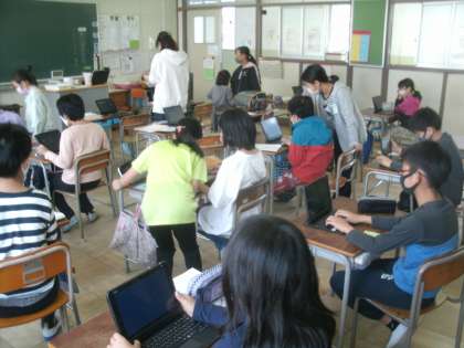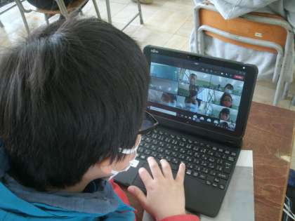 教室でteamsを繋いでいます。まだまだ全員が繋がるまでは艱難辛苦です。