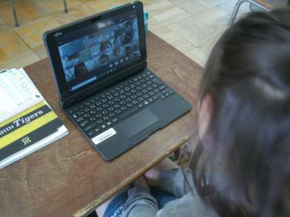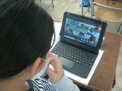 教室でteamsを繋いでいます。