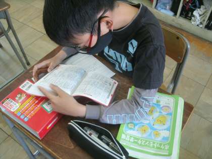 国語科学習の様子です。国語辞典を使って、言葉の意味調べをしています。