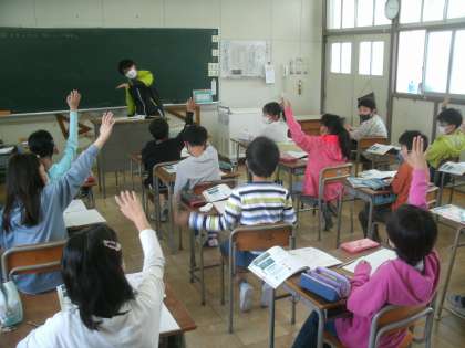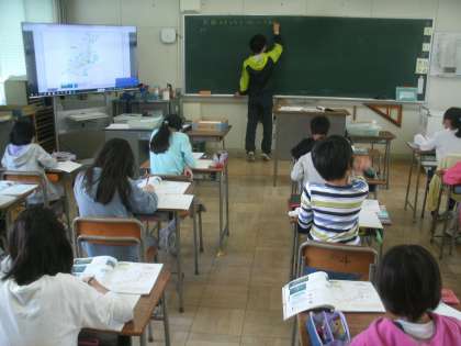 社会科学習の様子です。今日は日本の河川や湖のことについて学びます。