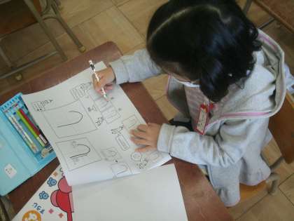 ひらがなの練習プリントに取り組んでいます。