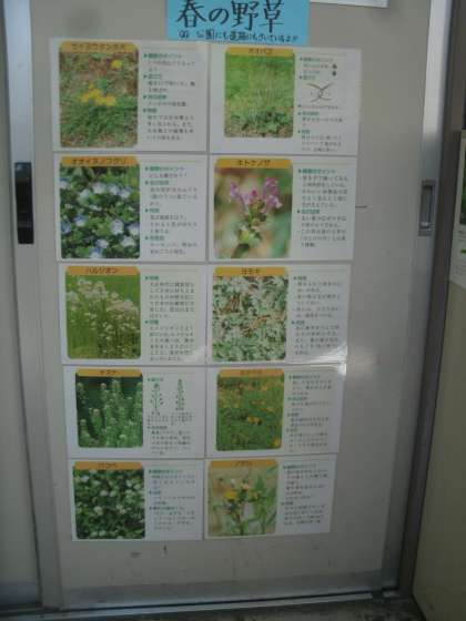3年生と4年生の教室の間にある学習室のドアに「春の野草」が写真と解説入りで紹介されていました。