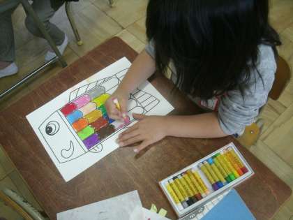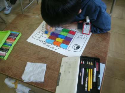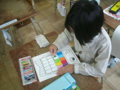 「こいのぼり」の絵に思い思いの色を塗っています。