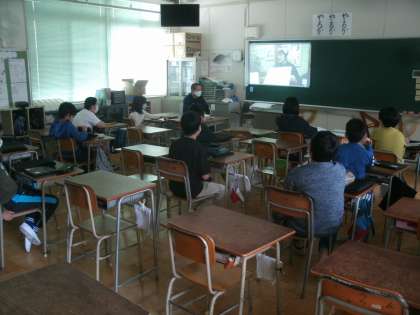 1時間目から登校してきた子ども達が動画を見て学習しています。