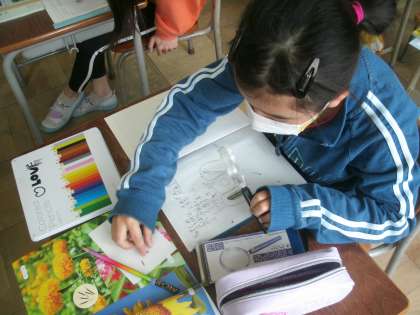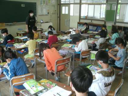 理科学習の様子です。ヒマワリ・マリーゴールド・ホウセンカの種子について学習しました。