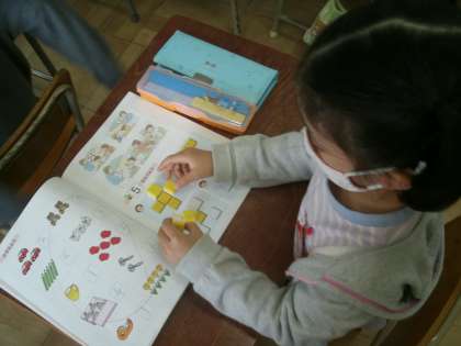 算数科学習の様子です。ブロックを使って学習に取り組みました。
