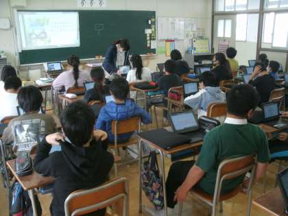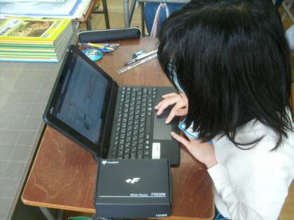 理科学習の様子です。「物がもえるしくみ」についてタブレット端末を使って調べています。