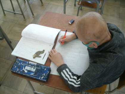 国語科「すいせんのラッパ」のワークシートに取り組んでいます。
