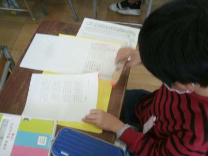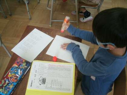 音読と計算の宿題は毎日出されています。今日、5月分の新しいチェックシートを貼っていました。お忙しいとは思いますが、チエックをお願いいたします。音読を聞いて頂いた後は「上手になったね」「声の大きさがちょうどよかったね」などとお子さんをほめてあげてくださいね。ほめてばかりはいられないという声も聞こえそうですが、「ほめて伸ばす」「ほめて広げる」ことが何よりも大切です。よろしくお願いいたします。