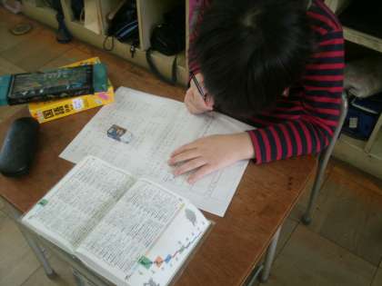 国語辞典を使って、意味調べをしています。使えば使うほど早く調べられるようになりますよ。最初は大変だけれど、自学自習のために国語辞典はとても大切なアイテムです。