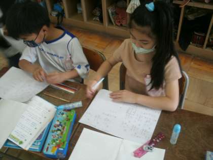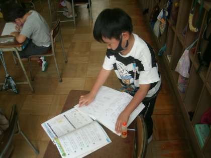 算数科学習の様子です。計算プリントに取り組んでいます。この時間に仕上げたプリントはノートに貼っておきましょう。