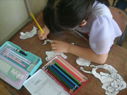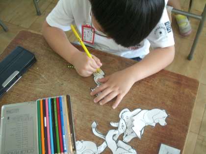 切り抜いた動物に色を塗りましょう。