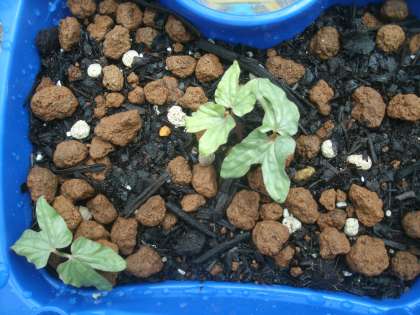 木曜日に植えたアサガオの種。今日、学校に来てみると・・・。たくさんの植木鉢からアサガオの双葉が出ていました。
