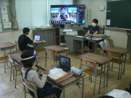 音楽科学習に取り組みましたソプラノリコーダーを吹いています。