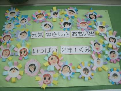 「学級目標」 2年生 公開日 2021/05/24 更新日 2021/05/24 お知らせ それぞれの学級・学年に自分たちの目指していく目標があります。2年生の目標は教室の後ろにみんなの似顔絵とともに貼ってあります。 「元気 やさしさ おもい出 いっぱい 2年1くみ」 元気いっぱいで優しさいっぱいで楽しい思い出がいっぱいできる2年1組になるといいね。 いいね(0)