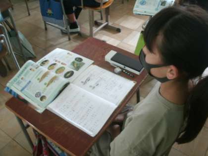 理科学習の様子です。「メダカの誕生」(NHK for school)を視聴しています。