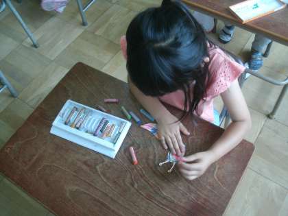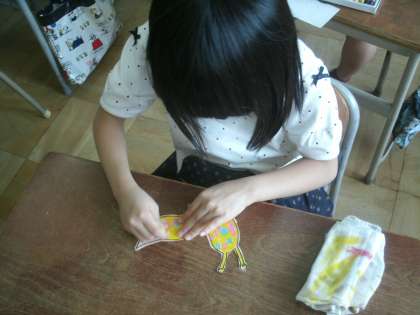 図画工作科学習の様子です。今日は「おしゃれなかたつむり」です。