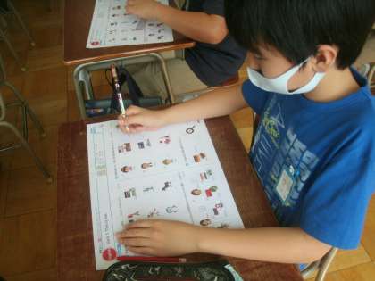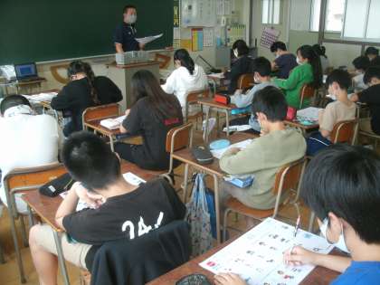 英語科の評価テストに取り組んでいます。ヒアリング中心のテストになっています。