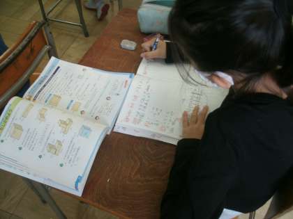 算数科学習の様子です。今日の学習課題は「比例の関係を使って考えよう」です。