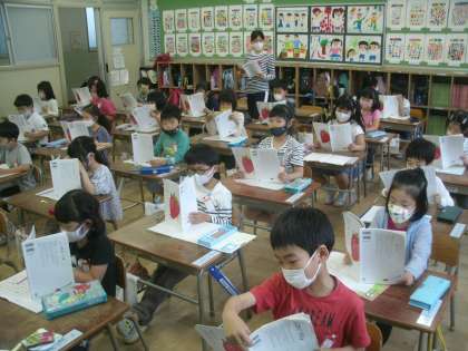 国語科学習の様子です。みんなで音読をしています。お家でも聞いてくださっていますか。