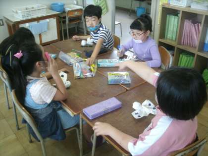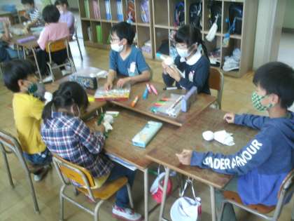 図画工作科学習の様子です。個性あふれる可愛い「てるてるぼうず」ができそうです。