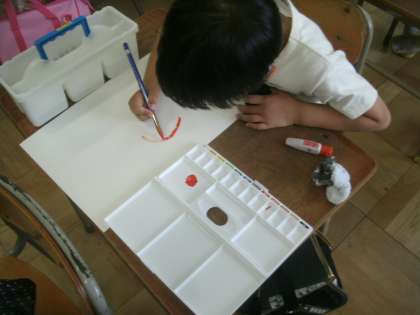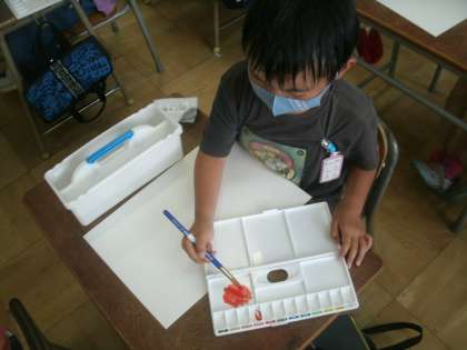 「初めての絵の具」 2年生(2) 公開日 2021/06/03 更新日 2021/06/03 お知らせ 図画工作科学習の様子です。初めて絵の具を使います。パレットに色を広げて、画用紙に色を置いていこう。 いいね(0)