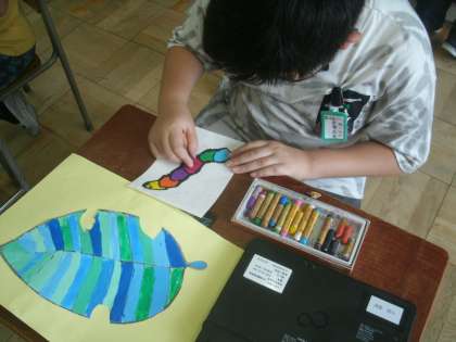かわいい作品がたくさんできました。金塚小学校の「はらぺこあおむし」ですね。