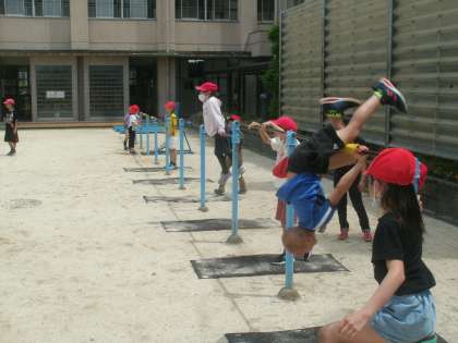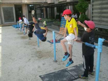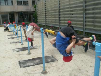 「鉄棒遊び」 公開日 2021/06/07 更新日 2021/06/07 お知らせ 今、体育科の学習で3年生と5年生が鉄棒運動に取り組んでいます。そのこともあって金塚小学校では鉄棒遊びがちょっとしたブームになっています。 いいね(0)
