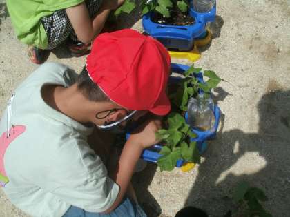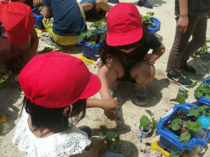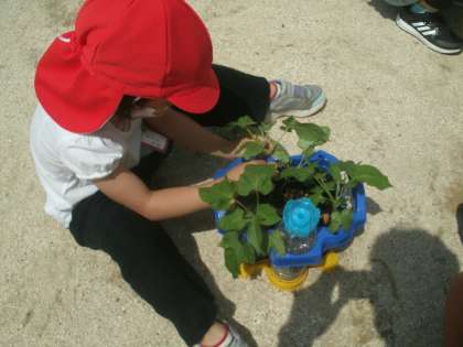 元気のいいアサガオを2本残して「間引き」をしました。2回目の肥料もあげました。